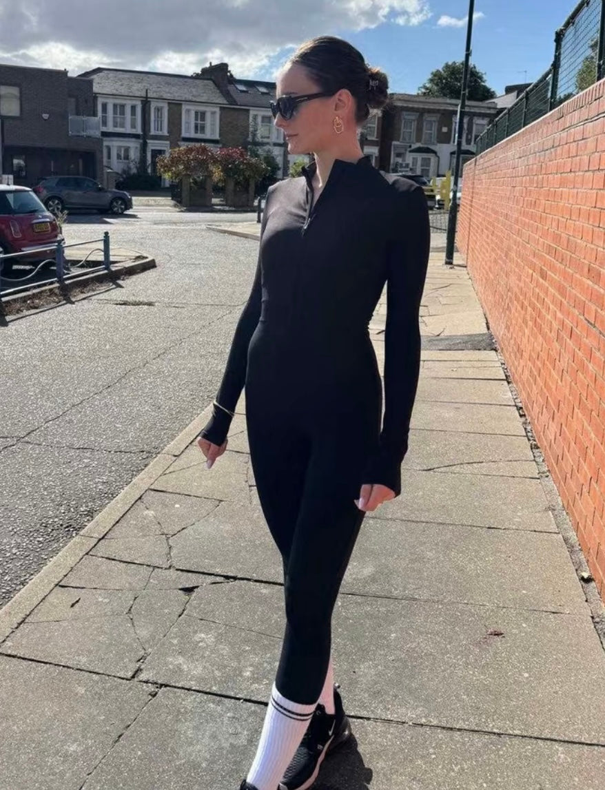 Slip into performance comfort. This flattering jumpsuit combines ultra-soft, breathable fabric with a sleek & sculpted fit.